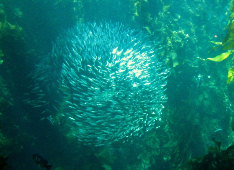 Jared Zimmerman / Flickr A school of small fish in the Monterey Bay Aquarium.
