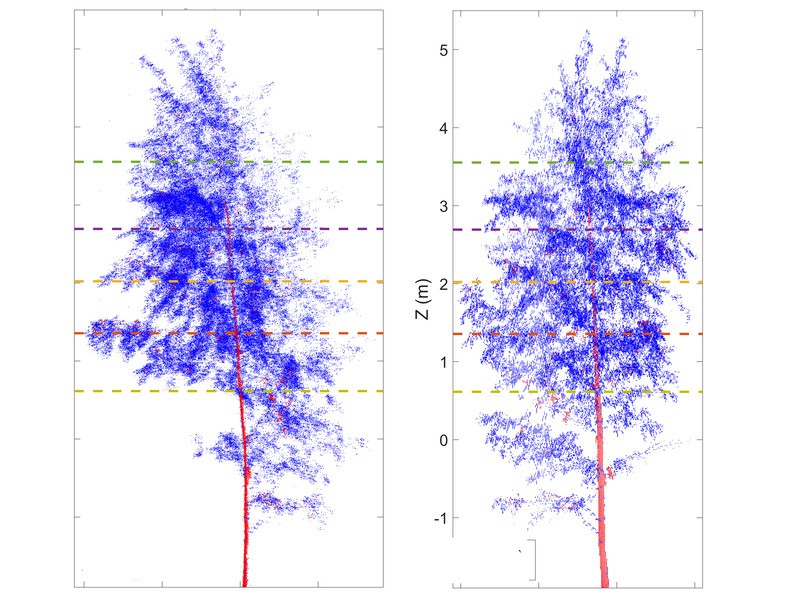 Scientists from Austria, Finland and Hungary are using laser scanners to study the day-night rhythm of trees. As it turns out, trees go to sleep too. Most living organisms adapt their behavior to the rhythm of day and night. Plants are no exception: flowers open in the morning, some tree leaves close during the night. Researchers have been studying the day and night cycle in plants for a long time: Linnaeus observed that flowers in a dark cellar continued to open and close, and Darwin recorded the overnight movement of plant leaves and stalks and called it 'sleep'. But even to this day, such studies have only been done with small plants grown in pots, and nobody knew whether trees sleep as well. Now, a team of researchers from Austria, Finland and Hungary measured the sleep movement of fully grown trees using a time series of laser scanning point clouds consisting of millions of points each.
