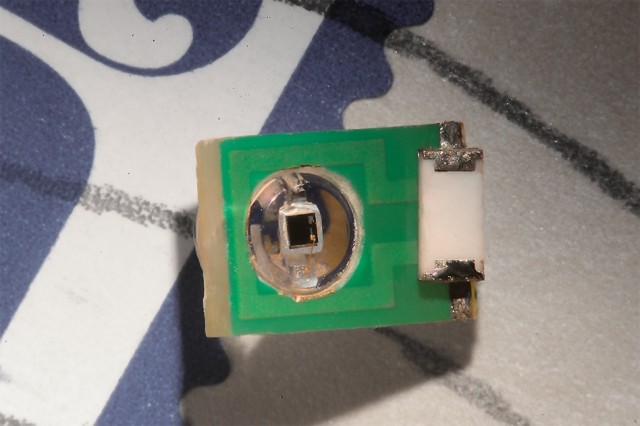 MIT engineers developed this sensor that can be used to measure optical and electrical signals in the brain, using MRI. Credit: Felice Frankel