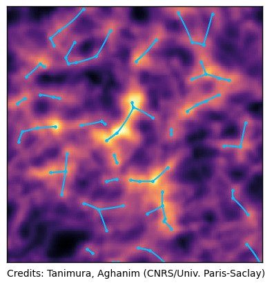 Simulated image of the X-ray emission from gas in the cosmic web filaments. Astrophysicists consider that around 40% of the ordinary matter that makes up stars, planets and galaxies remains undetected, concealed in the form of a hot gas in the complexe cosmic web. Today, scientists at the Institut d'Astrophysique Spatiale (CNRS/Université Paris-Saclay) may have detected, for the first time, this hidden matter through an innovative statistical analysis of 20-year-old data. Their findings are published on November 6, 2020 in Astronomy & Astrophysics . Galaxies are distributed throughout the Universe in the form of a complex network of nodes connected by filaments, which are in turn separated by voids. This is known as the cosmic web. The filaments are thought to contain almost all of the ordinary (so-called baryonic) matter of the Universe in the form of a diffuse, hot gas.