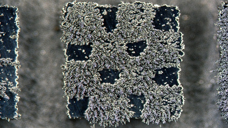 Precisely Magnetized: Iron filings stick to this mini chessboard with four millimeter edge length. The partially magnetic structure was produces from a single type of steel power at different temperatures. Image: Empa - During metal processing in the 3D laser printer, temperatures of more than 2,500 degrees Celsius are reached within milliseconds, causing some components of the alloys to evaporate. While widely considered a problem inherent to the process, Empa researchers spotted an opportunity - and are now using the effect to create new alloys with novel properties and embed them in 3D-printed metallic work pieces with micrometer precision. It looks quite inconspicuous to the casual beholder, hardly like groundbreaking innovation: a small metallic chessboard, four millimeters long on either side. At first glance, it shines like polished steel; at second glance, minute differences in color are visible: The tiny chessboard has 16 squares, eight appear slightly darker, the other eight a bit lighter. The unassuming material sample goes to show that 3D printing with the help of laser beams and metal pow-der is not only suitable for creating new geometric shapes, but also for producing new materials with completely new functionalities.