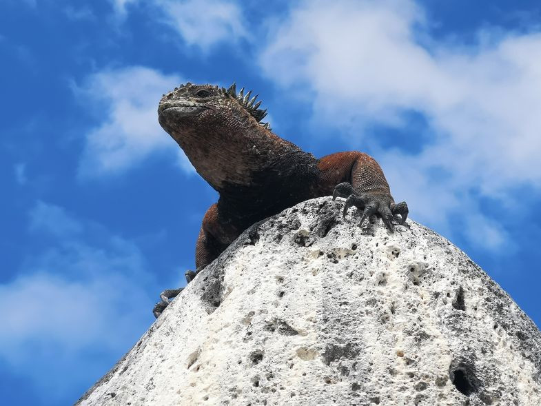 Endemic to the Galapagos Islands, marine iguanas are at risk of extinction. Photo: Iguanas from Above project, Amy MacLeod A research team led by zoologist Dr Amy MacLeod has been using drones to count marine lizards on the Galapagos Islands. The aim of the Leipzig University project is to determine the colony sizes of this vulnerable species and, with the help of volunteers, to precisely locate them - in order to ultimately be able to better protect the iguanas. A recent study on marine iguanas also shows that many of the proteins found in the secretions of special glands in these animals are part of their immune system. Professor Sebastian Steinfartz, who holds the professorship for Molecular Evolution and Systematics of Animals at Leipzig University, is one of the principal scientists involved in this study. Over the past few months, Dr Amy MacLeod and her expedition team have been using camera drones on two islands of the Galapagos archipelago to collect extensive aerial footage, specifically of the islands' coastlines. For it is here, hidden away on stony and very rugged terrain, that the marine iguanas live.