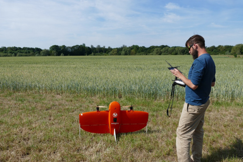 Jan Lehmann makes the final preparations before the drone can take off. WWU - Kathrin Kottke It looks absolutely idyllic, watching the Heck cattle and Konik horses grazing in the meadows in the Emsaue wet meadows near the village of Vadrup. This pasture landscape, covering an area of 33 hectares and used all year round, lies in the Emsaue nature conservation area and was set up in 2004 as part of the implementation of the plan to protect the wet meadows by the River Ems. The area is around 15 kilometres north-east of Münster and is run by the NABU ( Nature and Biodiversity Conservation Union ) nature station for the Münsterland. Since 2016, landscape ecologists at the University of Münster have been taking a close look at the area in order to find about more about the flora and fauna there. The researchers frequently make use of a drone weighing almost five kilos. These unmanned aerial vehicles (short UAV) produce ecosystem analyses from the air.