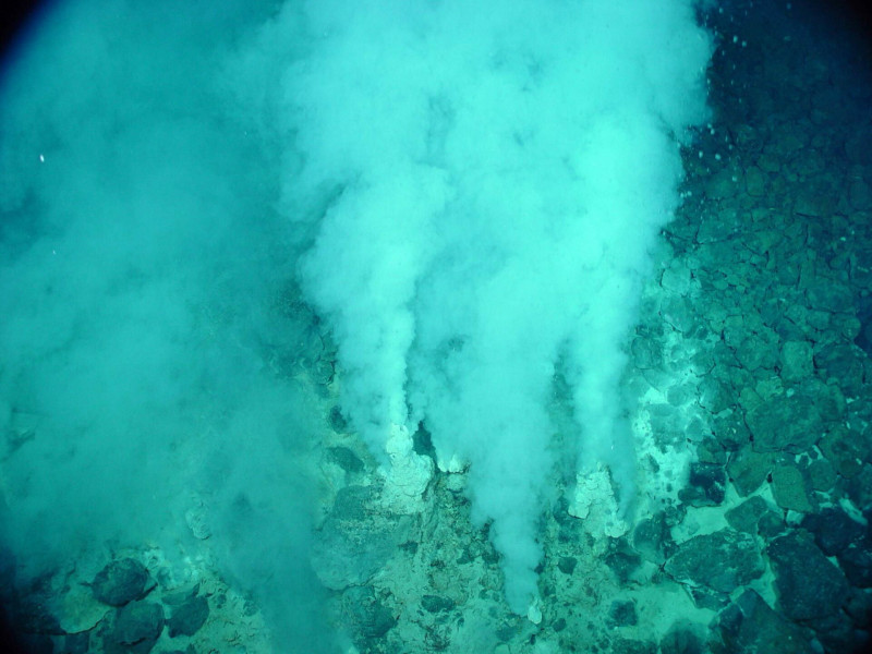 Inspired by light-sensing bacteria that thrive near hydrothermal vents like this one, synthetic chemists use vitamin B12 to catalyze valuable hydrocarbons known as olefins, or alkenes.