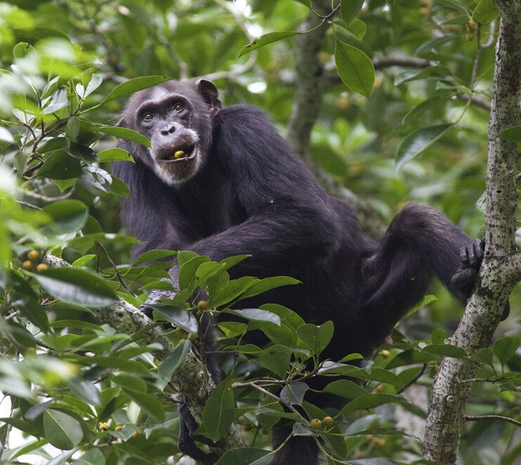 Chimpanzee, Pan troglodytes, feeding on figs in Taļ Forest, Ivory Coast. Picture: Martyn Colbeck.