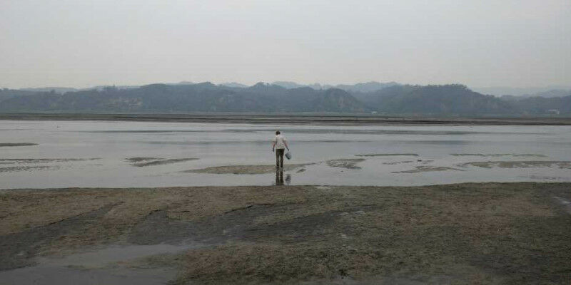 Thomas Blattmann, co-author on the study, is taking a sample at Gaoping River in Taiwan. (Image: Shing-Lin Wang / T. Eglinton / ETH Zurich)