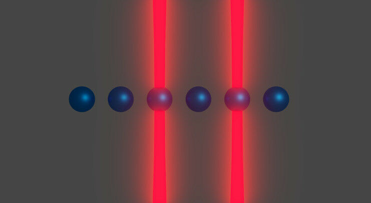 Two trapped ions ( in blue ) are selected by optical tweezers ( in red ). A quantum gate between the ions can be implemented using electric fields. Physicists from the University of Amsterdam have proposed a new architecture for a scalable quantum computer. Making use of the collective motion of the constituent particles, they were able to construct new building blocks for quantum computing that pose fewer technical difficulties than current state-of-the art methods. The results were recently published in Physical Review Letters. The researchers work at QuSoft and the Institute of Physics in the groups of Rene Gerritsma and Arghavan Safavi-Naini. The effort, which was led by the PhD candidate Matteo Mazzanti, combines two important ingredients.