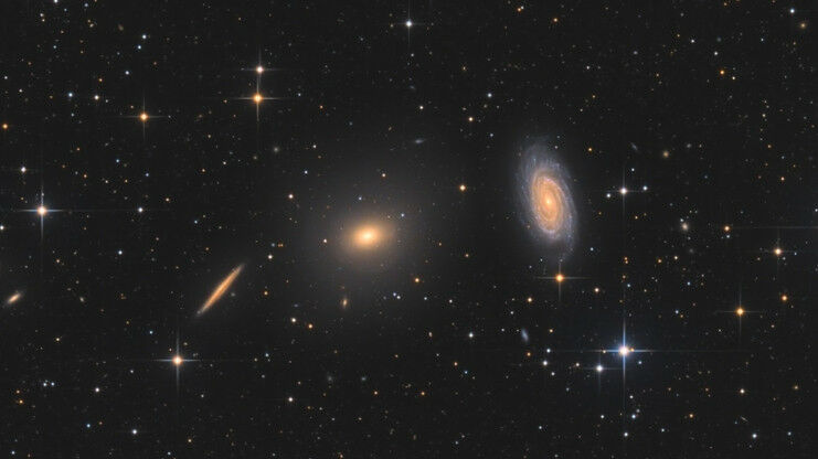 In the centre of the image the elliptical galaxy NGC5982, and to the right the spiral galaxy NGC5985. These two types of galaxies turn out to behave very differently when it comes to the extra gravity - and therefore possibly the dark matter - in their outer regions. Images: Bart Delsaert (www.delsaert.com).