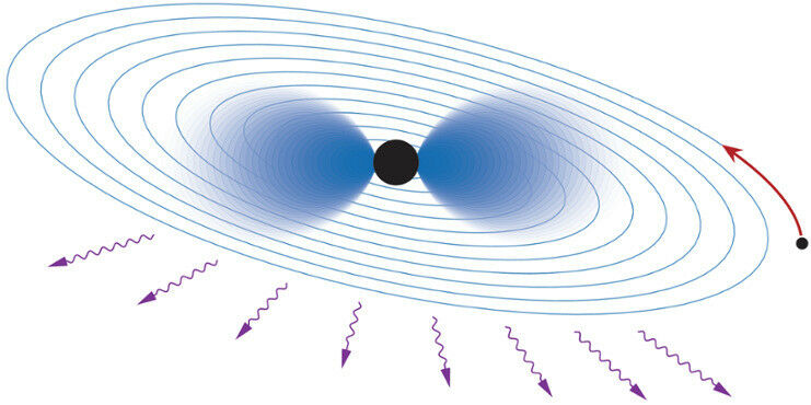 An atom in the sky. If new ultralight particles exist, black holes would be surrounded by a cloud of such particles that behaves surprisingly similar to the cloud of electrons in an atom. When another heavy object spirals in and eventually merges with the black hole, the gravitational atom gets ionized and emits particles just like electrons are emitted when light is shone onto a metal.