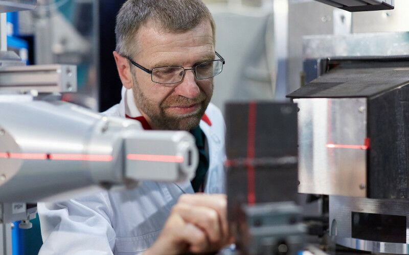 Dr. Michael Hofmann adjusts a sample on the STRESS-SPEC neutron diffractometer. With the help of the sensitive measuring instrument, the researchers were also able to detect the crystal structure of carbonic acid.