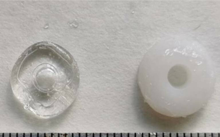3D printed paracetamol printlets - 3D-printed paracetamol printlets - Medicines can be printed in seven seconds in a new 3D-printing technique that could enable rapid on-site production of medicines, reports a UCL-led research team. The findings published in the journal, Additive Manufacturing , improve the prospects of how 3D printers could be integrated into fast-paced clinical settings for on-demand production of personalised medicines. For the current study, the researchers loaded printlets (printed tables) with paracetamol, which is one of many medicines that can be produced with a 3D printer. One of the leading techniques for 3D printing is vat photopolymerisation, which affords the highest resolution for complexity at microscales, and also suits many medications as it does not require high heat. For printing medicines, the technique uses a resin formulation, constituting the required drug dissolved in a solution of a photoreactive chemical, activated by light to solidify the resin into a printed tablet. But vat polymerisation has been hampered by slow printing speeds, due to its layer-by-layer approach. Here, scientists have developed a new vat polymerisation technique that prints the entire object all at once, reducing the printing speed from multiple minutes to just seven to 17 seconds (depending on the resin composition selected).