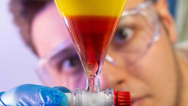 Anthraquinones from Cortinarius mushrooms change colour in acidic (top) and alkaline environments. Image: Jens Meyer (University of Jena)