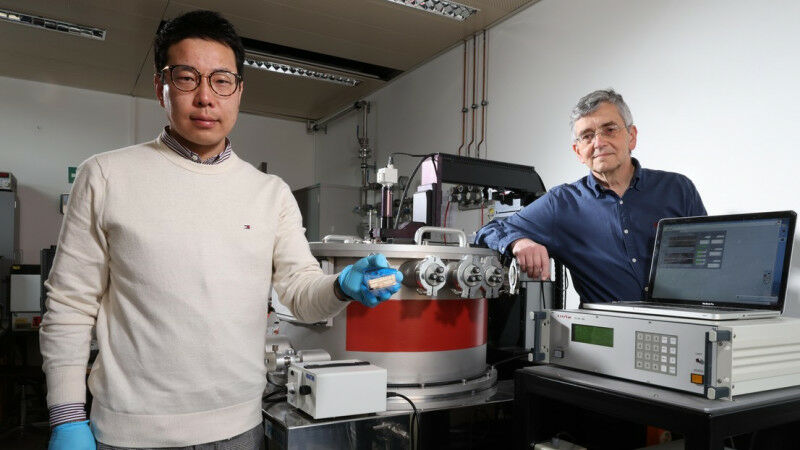 Dae-Sung Park and Dragan Damjanovic in their lab. Alain Herzog 2022 EPFL - Researchers have discovered that gadolinium-doped cerium oxide, a compound they created in the lab, could be a promising alternative to certain piezoelectric materials: it has the same proprieties yet may be 100 times more effective. It's also lead-free, unlike the best piezoelectric materials, which means that it could be employed in bio-compatible medical applications. Further research will be conducted on this highly promising compound and similar materials. Scientists at EPFL's School of Engineering have found that by manipulating atomic defects in a lead-free material that is normally not piezoelectric, it is possible to induce a large piezoelectric effect. Piezoelectric materials are used widely in modern-day devices, such as digital watches, cars (for controlling emissions of harmful gases) and ultrasonic instruments (for medical diagnosis and imaging). -Piezoelectric materials convert electrical energy into mechanical energy and vice-versa,- says Dr. Dae-Sung Park, a postdoc at EPFL's research group for ferroelectrics and functional oxides, headed by Prof. Dragan Damjanovic.