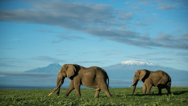 Big-tusked elephants safe in the Amboseli ecosystem at the foot of Kilimanjaro, Kenya. Copyright: Max Melesi on behalf of Koobi Carbon
