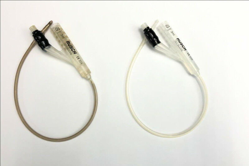 Photo of a coated versus an uncoated catheter. Credit: Kizhakkedathu Lab