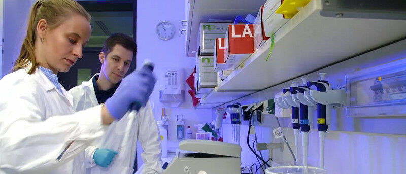 A HIRI-team headed by research group leader Mathias Munschauer focused on the interactions between different SARS-CoV-2 RNAs and the proteins of the human host cell. (Image: HIRI / Lucky Panda Studios)