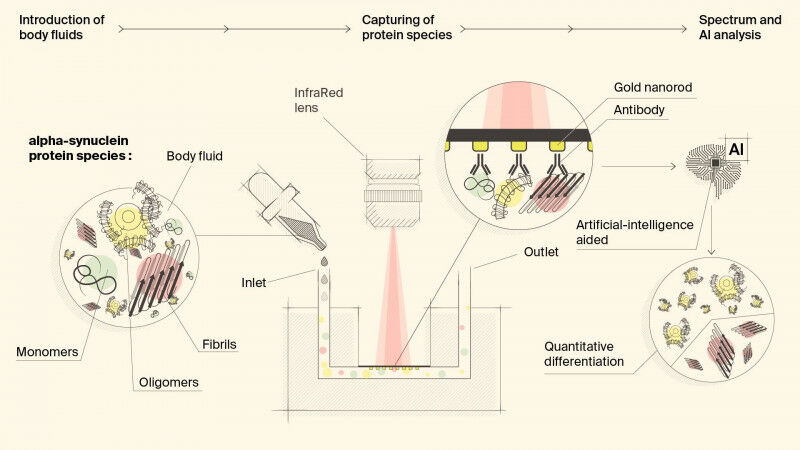 © 2023 EPFL / Veuillet & Mitchell - Researchers at EPFL introduce the highly-multidisciplinary, AI-enhanced, biosensing tool ImmunoSEIRA for the detection of misfolded proteins linked to Parkinson's and Alzheimer's disease. By combining multiple advanced technologies into a single system, researchers have made a significant step forward in diagnosing neurodegenerative diseases (NDDs) such as Parkinson's disease (PD) and Alzheimer's disease (AD). This novel device is known as the ImmunoSEIRA sensor, a biosensing technology that enables the detection and identification of misfolded protein biomarkers associated with NDDs. The research, published in Science Advances , also harnesses the power of artificial intelligence (AI) by employing neural networks to quantify disease stages and progression. This significant technological advance holds promise not only for early detection and monitoring of NDDs, but also for assessing treatment options at various stages of the disease's progression. Treatment of neurodegenerative diseases faces a significant challenge due to the lack of effective diagnostic methods for early detection and monitoring of disease progression. Protein misfolding, a common mechanism in neurodegeneration, has been identified as a key event in disease progression.