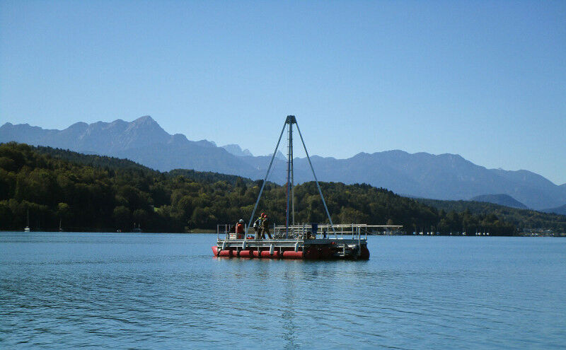 Sampling at Lake Wörthersee The subsurface of Lake Wörthersee was sampled from this 8-meter-high platform in 2018. Michael Hilbe - A team of geologists from the University of Innsbruck examined the sediments of Carinthian lakes for traces of past earthquakes. The results show that the earthquake of 1348 caused the strongest shaking in the Carinthian region since the end of the last cold period. Earthquakes with potential building damage are rare there, but can occur in temporal clusters . As historical records show, Carinthia was shaken by one of the strongest known earthquakes in the Alpine region in 1348. It is certain that the quake caused parts of Villach's local mountain Dobratsch to fall, damming the Gail River to form a lake and thus leading to the flooding of some localities. The epicenter of this earthquake and the actual extent of the damage in Carinthia is, however, a matter of disagreement among historians as well as seismologists.