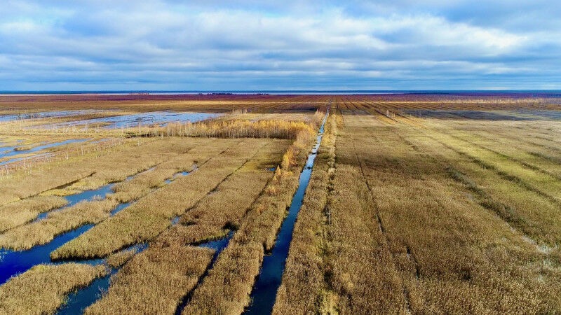 The Orshinski Mokh wetland in Tver province, Russia. A quarter of the wetland was drained between 1950 and 1990 for the extraction of peat, which was used as fuel to supply energy to a neighbouring settlement. Photo: Kirill Shakhmatov