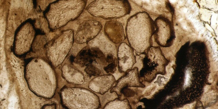 Cross-section of a shoot tip of Asteroxylon mackiei, a very early lycopod from the Lower Devonian (ca. 309 million years ago) of Rhynie (Aberdeenshire, Scotland)