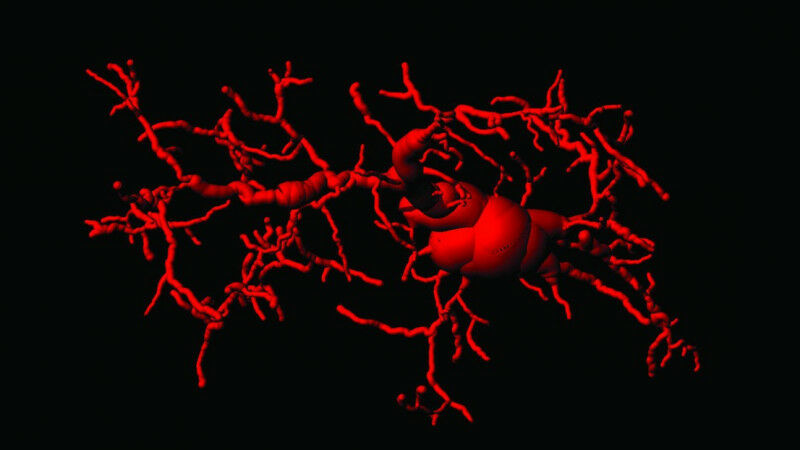 An activated microglia cell in the brain of cGAS/STING activated mice. Credit: Gulen et al. Nature 02 August 2023. DOI: 10.1038/s41586’023 -06373-1 (0)