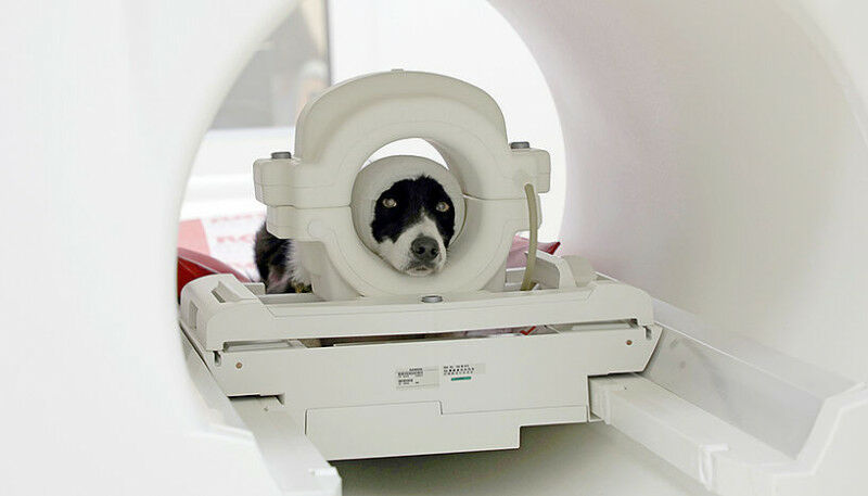Fig. 1: Pet dog Maeva is ready for data collection in the magnetic resonance ima