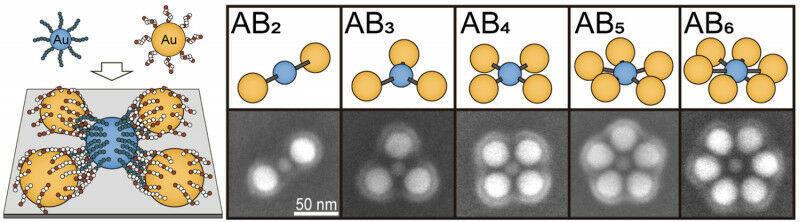 Gold nanoparticles react with the help of customised polymers to form precisely ordered plasmonic molecules. Photo: Cai/Vana