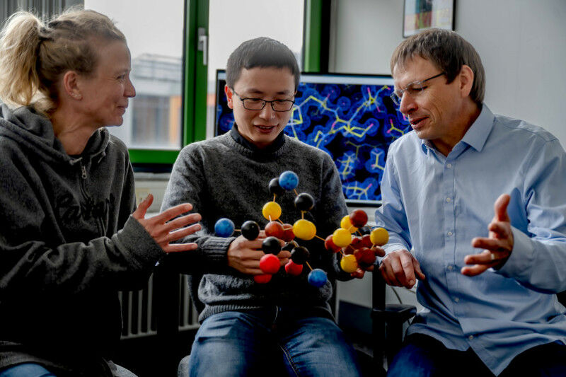 Anja Hemschemeier, Jifu Duan and Eckhard Hofmann ( from left ) worked together on the study. RUB, Marquard Formaldehyde can inhibit enzymes that produce hydrogen particularly efficiently. Researchers from Bochum have discovered how this can be prevented. Enzymes from microorganisms can produce hydrogen (H