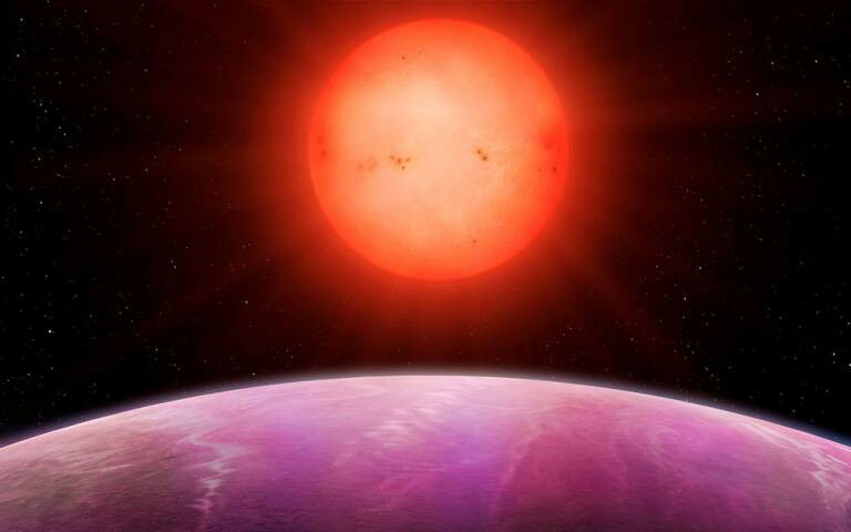 Artist's impression of sunrise on planet NGTS-1b, a gas giant previously discovered orbiting a low-mass star. Credit: University of Warwick/Mark Garlick - Stars with less than half the mass of our Sun are able to host giant Jupiter-style planets, in conflict with the most widely accepted theory of how such planets form, according to a new study led by UCL and University of Warwick researchers. Gas giants, like other planets, form from disks of material surrounding young stars. According to core accretion theory, they first form a core of rock, ice and other heavy solids, attracting an outer layer of gas once this core is sufficiently massive (about 15 to 20 times that of Earth). However, low-mass stars have low-mass disks that, models predict, would not provide enough material to form a gas giant in this way, or at least not quickly enough before the disk breaks up. In the study, accepted for publication in the Monthly Notices of the Royal Astronomical Society (MNRAS) and funded by the UK Science and Technology Facilities Council (STFC), researchers looked at 91,306 low-mass stars, using observations from NASA's Transiting Exoplanet Survey Satellite (TESS), and in 15 cases found dips in the brightness of the light corresponding to a gas giant passing in front of the star. Five out of the 15 potential giant planets have since been confirmed as planets using independent methods.