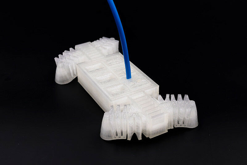 The modules make it possible for the first time to produce flexible and electronics-free soft robots entirely in a 3D printer using filament made from conventional printing material. Photo: Lucia Brunold