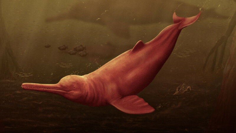 Artistic reconstruction of Pebanista yacuruna in the murky waters of the Peruvian proto-Amazonia. (Image: Jaime Bran) - Measuring between 3 to 3.5 meters, 16 million years old: Paleontologists from the University of Zurich have announced the discovery of a new species of freshwater dolphin in the Peruvian Amazon region. Surprisingly, its closest living relatives can be found in the river dolphins of South Asia. River dolphins are among the rarest modern cetaceans, with most extant species critically endangered. Despite their similar appearance, however, these animals are not directly related, but represent the late survivors of different cetacean groups that once inhabited our planet. An international research team led by the University of Zurich (UZH) has now revealed the largest river dolphin ever found, measuring between 3 and 3.5 meters. The new species, named Pebanista yacuruna after a mythical aquatic people believed to inhabit the Amazon basin, was found in Peruvian Amazonia and is dated to be 16 million years old.