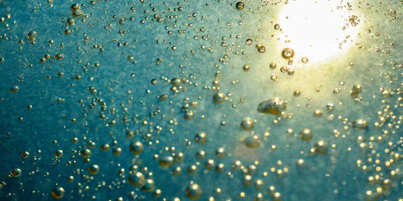In the new process, air is channelled through a liquid to capture CO2. If the liquid is irradiated with light, the greenhouse gas is released again and can be collected (AI-generated symbol image). (Visualisation: ETH Zurich)