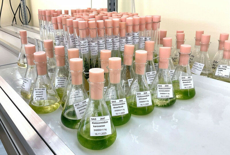 Liquid samples of different algal species investigated in the study, all stored in the Culture Collection of Algae at Göttingen University. Photo: Tatyana Darienko