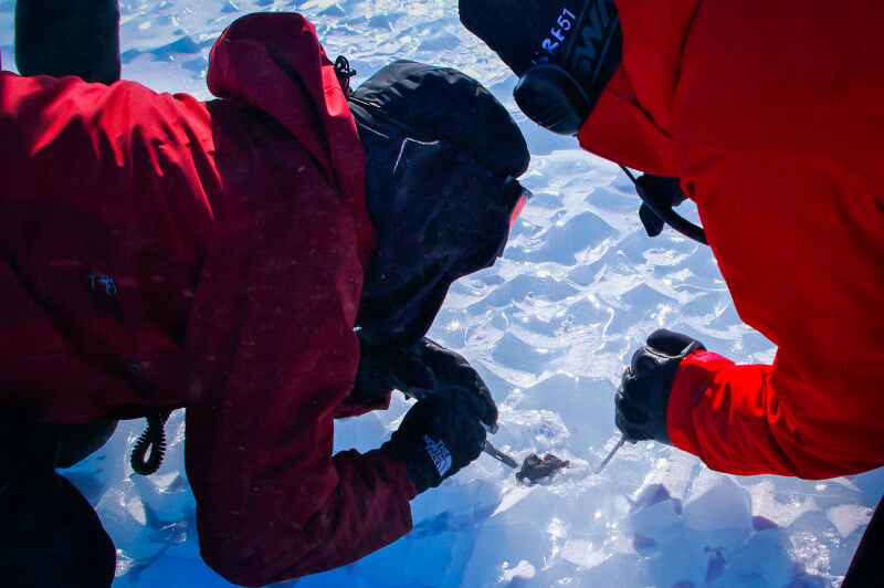 The Antarctic holds a valuable treasure of around 300,000 meteorites lying on the surface of the ice. But many of them could soon disappear. A new study shows that for every tenth of a degree rise in global air temperature, between 5,000 and 12,000 meteorites are lost from the surface of the ice sheet - they sink. By 2050, about a quarter of the meteorites will no longer be found on the surface. In a high warming scenario, this could rise to three quarters by 2100. Researchers collect a meteorite that provides information about the formation of the moon and other celestial bodies. (Photo: Steven Goderis, Université libre de Bruxelles) With the loss of meteorites, a great deal of knowledge will be lost, as they are unique extraterrestrial objects. «They provide information about the origin of life on Earth or the formation of the Moon and other celestial bodies,» says glaciologist Daniel Farinotti of the Swiss Federal Institute for Forest, Snow and Landscape Research WSL and ETH Zurich, who was involved in the study.