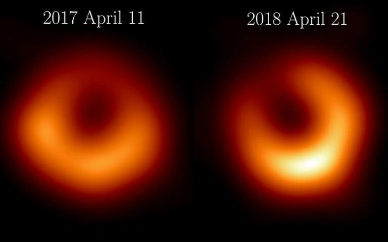 Two images of the supermassive black hole M87, one from 2017 observations, the other from 2018 observations The global Event Horizon Telescope (EHT) collaboration involving UCL researcher Dr Ziri Younsi has released new images of M87*, the supermassive black hole at the centre of the galaxy Messier 87. The new images are from observations taken in April 2018, one year after the first observations of M87* in April 2017 which resulted in the first ever image of a black hole. They reveal a familiar, bright ring of emission of the same size as was found in 2017. The brightness peak of the ring has shifted by about 30º compared to the images from 2017, which is consistent with theoretical understanding of variability from turbulent material around black holes. The EHT collaboration, involving more than 300 researchers, uses observations from a worldwide network of radio telescopes and the new images feature the first participation of the newly commissioned Greenland Telescope as well as a dramatically improved recording rate across the array of telescopes. The images are presented in a paper in the journal Astronomy & Astrophysics . Dr Keiichi Asada, of the Academia Sinica Institute for Astronomy and Astrophysics in Taiwan, said: " A fundamental requirement of science is to be able to reproduce results.
