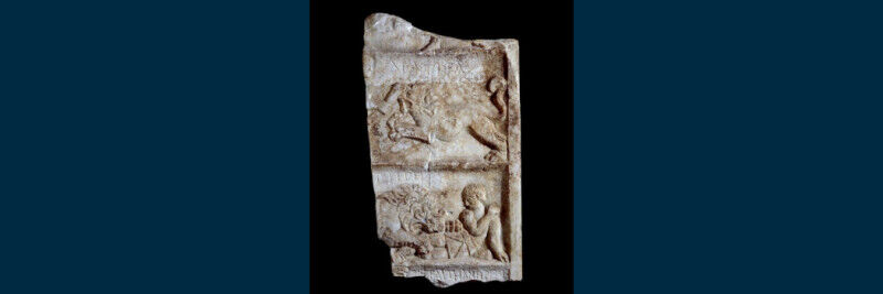 Image caption: Marble relief showing a fight between a beast fighter and a lion, Ephesus,1st-2nd century AD. ©The Trustees of the British Museum.
