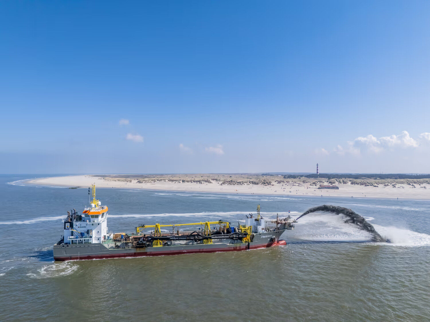 The coastline at Ameland-Oost has been steadily eroding, with significant sand loss to the sea posing a long-term challenge to coastal safety. Rijkswaterstaat has therefore commissioned a large-scale shoreface nourishment: 3 million cubic meters of sand placed on the seabed about 105 meters from the beach. Boskalis Nederland is currently carrying out the construction.