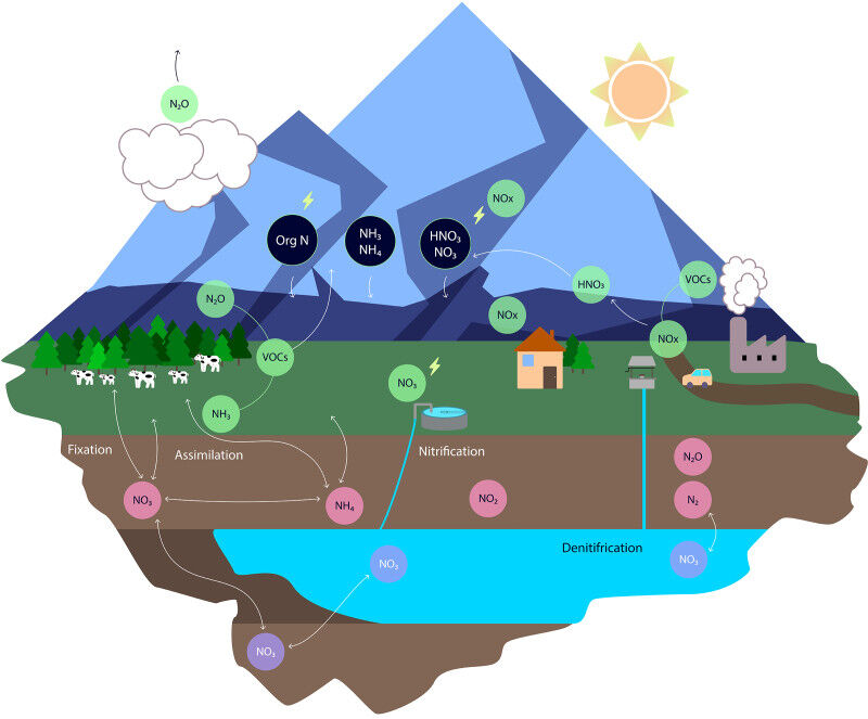 The prediction models for the nitrate contamination of groundwater are part of a larger ETH Domain project involving Eawag, EPFL, ETH Zurich, PSI and WSL. The joint initiative called ReCLEAN aims to comprehensively understand and quantify the nitrogen cycle in Switzerland. "Nitrogen is a fascinating element because it occurs everywhere on earth in different forms," says Winkel (see figure).