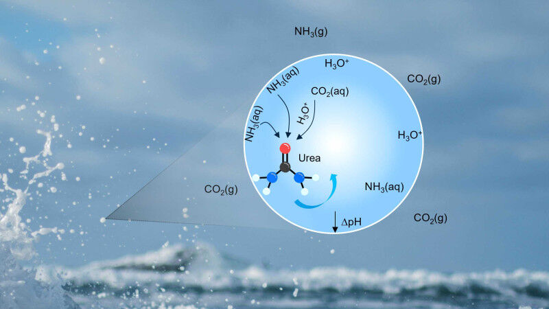 Signorell’s team studied tiny water droplets such as those found in sea spray and fine mist. The researchers observed that urea can form spontaneously from carbon dioxide (CO2) and ammonia (NH3) in the surface layer of the droplets under ambient conditions. The physical interface between air and liquid creates a special chemical environment at the water surface that makes the spontaneous reaction possible.As a droplet has a very large surface area in relation to its volume, chemical reactions mainly take place near this surface. Chemical concentration gradients form in this area, which acts like a microscopic reactor. The pH gradient across the interfacial layer of the water droplets creates the required acidic environment, which opens unconventional pathways that would otherwise not take place in liquids.