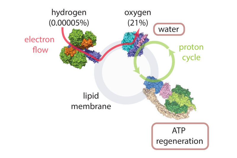 To test whether this theoretical process can actually take place in organisms, the researchers reconstructed a minimal, synthetic respiratory chain from purified components. Von Ballmoos says: "In humans, cellular respiration takes place in the mitochondria and converts the energy from food into ATP. In the process, electrons are gradually transferred from energy-rich molecules to oxygen. The energy released in this way is used to drive a proton cycle, which generates ATP by means of a nanoturbine." In the current study, the researchers produced a minimal, synthetic respiratory chain from just three enzymes embedded in an artificial lipid membrane - one of which (the hydrogenase) came from Australia, the other two (proton pump and nanoturbine) from Bern. "One difficulty of this experiment that we were finally able to overcome was to incorporate the proteins into the membrane in such a way that the protons are pumped in the right direction," says Stefan Moning, second author of the study and doctoral candidate at the Department of Chemistry, Biochemistry and Pharmaceutical Sciences at the University of Bern.