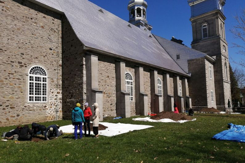 Between April 22 and May 17, a team of 15 archaeology students led by Université de Montréal professor and bioanthropologist Isabelle Ribot de Montréal, conducted an excavation campaign beneath the verdant lawns bordering the church of La Visitation-de-la-Bienheureuse-Vierge-Marie, in the Sault-au-Récollet sector. His team was made up of Jean-Christophe Ouellet, archaeologist in charge of the UdeM excavation school, Jennifer Bracewell, postdoctoral fellow, Sarai Barreiro-Argüelles, a doctoral student specializing in historical archaeology, and some 15 student volunteers.