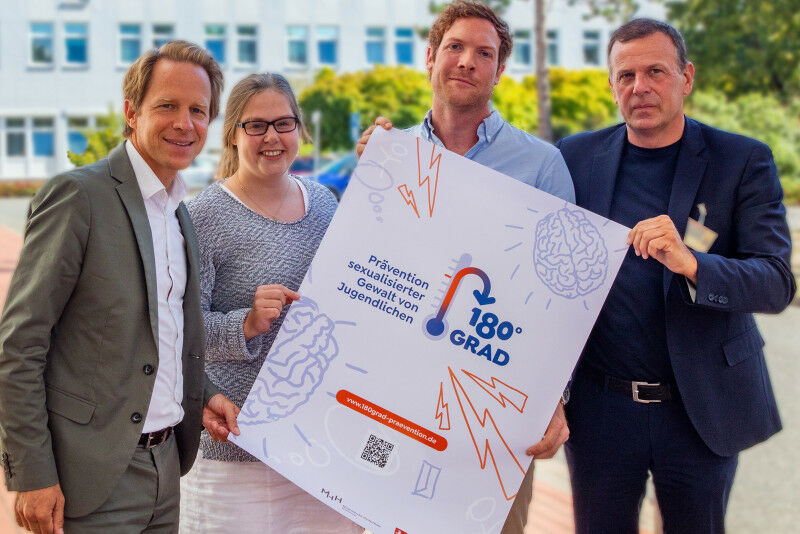 Professor Dr Tillmann Krüger, Dr Jonas Kneer, Theresa Engelmann and Clinic Director Professor Dr Stefan Bleich ( from left ) Copyright: Karin Kaiser / MHH - MHH opens outpatient clinic to treat dysregulated sexuality in adolescents / Ministry of Social Affairs funds project with 300,000 euros Experts from the Department of Clinical Psychology and Sexual Medicine at the Hannover Medical School (MHH) have launched a new treatment and research project for the prevention and treatment of dysregulated sexuality in adolescents: "180Grad". The diagnostic and therapeutic offer is aimed at adolescents between the ages of 14 and 18 who fear they can no longer control their sexual impulses. This includes excessive consumption of (child) pornography as well as sexualised violent fantasies and assaults. The Lower Saxony Ministry of Social Affairs is funding the programme with 300,000 euros for the next three years. Under the motto "Crime prevention is the best victim protection", those affected receive anonymous and free therapeutic help under confidentiality. MHH has many years of expertise in perpetrator prevention The aim is to prevent sexual violence among young people in the long term. "180Grad" is the third MHH offer in the field of offender-oriented prevention, in addition to the already established projects "Kein Täter werden" and "I can change".