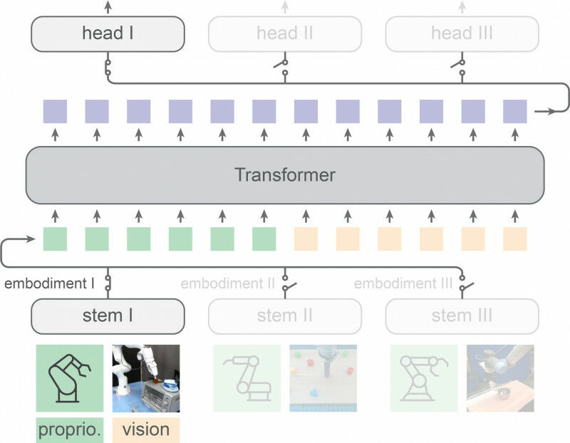 The researchers align data from vision and proprioception into the same type of input, called a token, which the transformer can process. Each input is represented with the same fixed number of tokens.