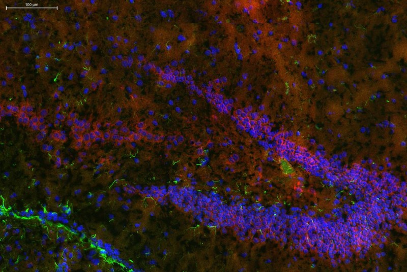 A part of the Hippocampus brain structure with fluorescent endocannabinoid system in neurons.