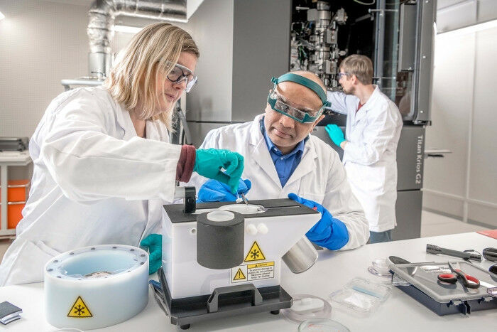 Photo credits: Christian Jaeggi for Novartis - Cryo-electron microscopy, or cryo-EM for short, has revolutionized the way scientists image the smallest of structures. In a short video, the heads of the joint Novartis-FMI cryo-EM center discuss how the technique is advancing biomedical research and drug discovery, and where the field will go in the near future. Cryo-EM is a powerful technique for imaging structures as small as viruses. It involves freezing proteins or other biomolecules in a thin layer of ice, then hitting them with a beam of electrons to determine their 3D shape in stunning detail. These structures can help researchers to understand how medically important proteins work and how drugs could target them. The Novartis campus in Basel is home to a fully operational cryo-EM center, shared between Novartis and the FMI. The center began operating in November 2016.
