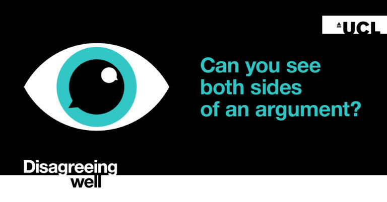 Graphic of text of an eye incorporating speech bubbles and words: can you see both sides of an argument? VPEE Student Journalist, Giovanna Cantarin, shares her reflections of attending the first UCL Disagreeing Well event: Disagreeing Well in Higher Education. "But whose side are you on?" . This is a question we have all heard ourselves asked at least once in our lives, perhaps not very long ago. Given the recent events, many of us will have tried to confront our friends and classmates in search of firm truth- to find common ground on divisive topics. The incomprehensible, in fact, creates an inner conflict with our ancestral need for apparent clarity, for a human sense of belonging, for binary rationality, for a total lack of nuance. And there is nothing wrong with this: seeking comfort in certainty is part of our human nature. Yet, if right and wrong was so clean cut, there would be no discussions, let alone wars.