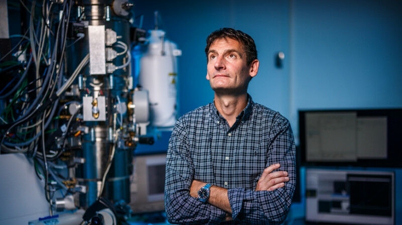 In the workspace, the transmission electron microscope is protected from electromagnetic interference fields so that measurement results cannot be falsified. Image: Empa - As head of Empa's Electron Microscopy Center, Rolf Erni has to balance many tasks: negotiating industrial contracts, promoting young scientists, teaching, supporting researchers at other Empa labs. And fascinating fundamental research, for which he has been honored as one of the very few Distinguished Senior Researchers at Empa. If you google what Rolf Erni actually does, you have to be prepared for polysyllabic words. "We employ atomic-resolution imaging, mostly in STEM mode, combined with local electron energy-loss spectroscopy (EELS), energy-dispersive X-ray (EDX) spectroscopy, as well as off-axis electron holography" - food for thought from the Electron Microscopy Center's website, at which even trained researchers are likely to frown. "This is not rocket science," Rolf Erni likes to say then, as he did recently at a talk about his work - a reassuring understatement that probably stems from his research stint in the US. In other words, this is not highly sophisticated research for a select few, nor is it an impossibility for the normally gifted.