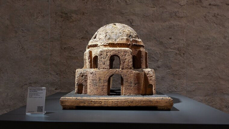 Some of the pieces on display were probably tendered as souvenirs, in effect bric-a-brac. Nevertheless, Eva Winter emphasises the value of the exhibited pieces: »The models show the great didactic potential and the broad functional spectrum of three-dimensional representations.« The models are made of cork, stone, terracotta and bronze. In some cases, miniaturised columns were produced, with antique building materials serving as raw materials.