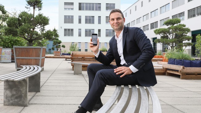 Pascal Gallo, CEO of the start-up with the logo of the token which will be used on the blockchain© 2018 Alain Herzog