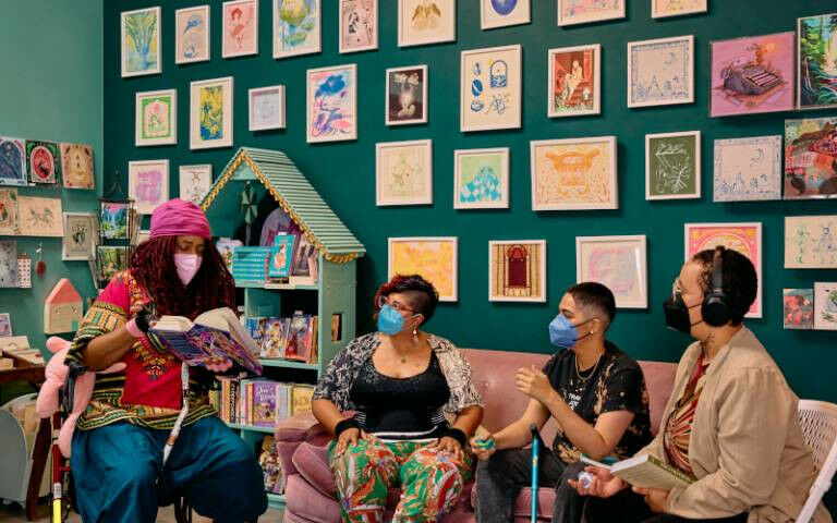 Four masked people of color discuss books in an art-filled bookstore. Take a look at our comprehensive reading list compiled by Pip Jackson, UCL’s Head of Inclusive Environments. Think something’s missing’ Make your own recommendation!